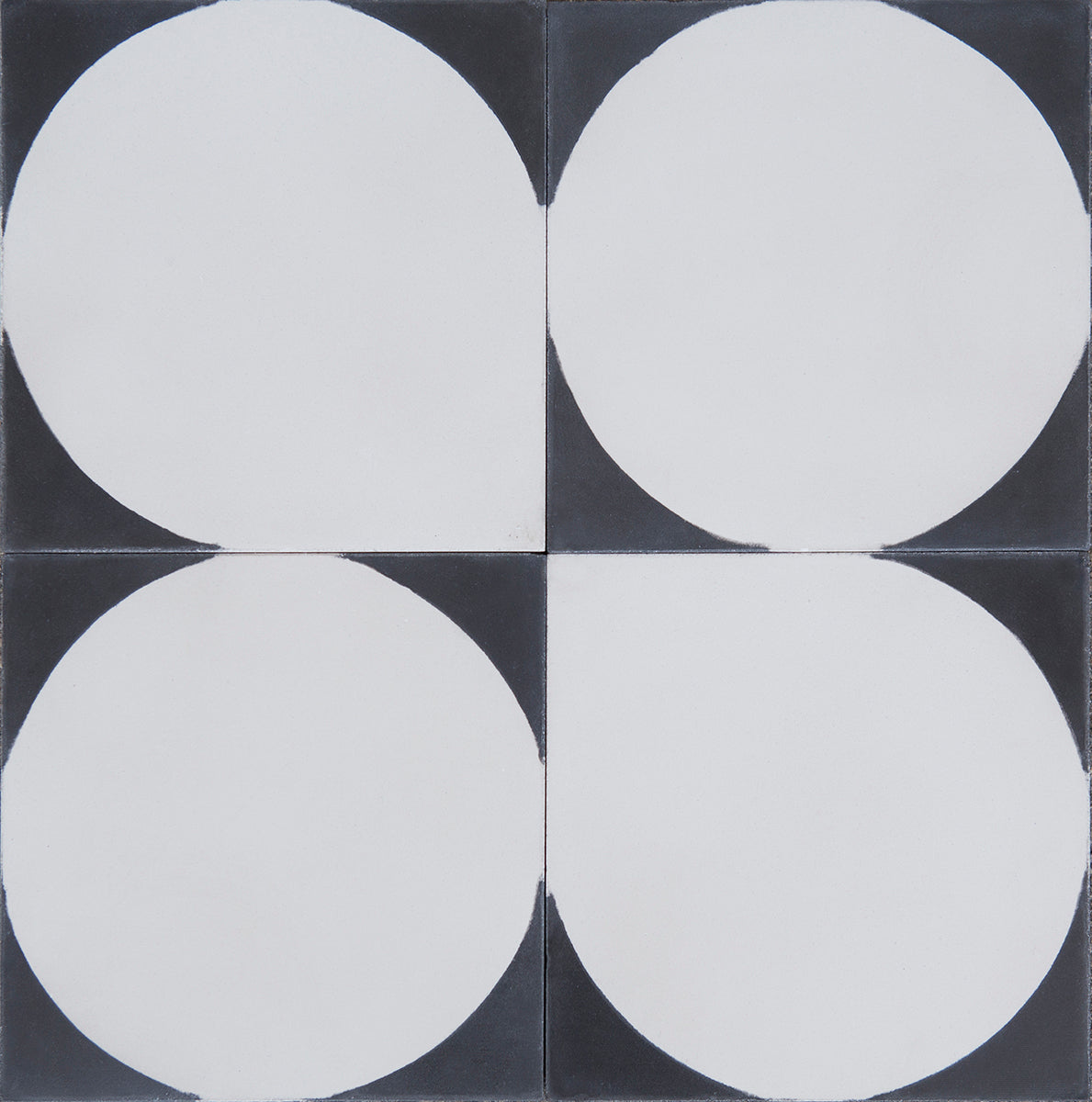 Created in collaboration with LA-based design firm Commune, the decorative cement tiles in the Circle Drop collection are handmade in Vietnam using the same artisanal techniques that have been passed down for centuries. Colors are mixed using cement, stone powder and pigment and then hand-poured into patterned molds affixed to a tile base. The mold is then removed, and a mixture of cement and sand is added to strengthen the bond between layers before the tile is hydraulically pressed. The pressed tiles are then racked and, lastly, cured underwater for 24 hours before finishing. This labor-intensive, multistep process produces unique tiles with unparalleled durability, character and beauty, while honoring a long, rich history of traditional craftsmanship.