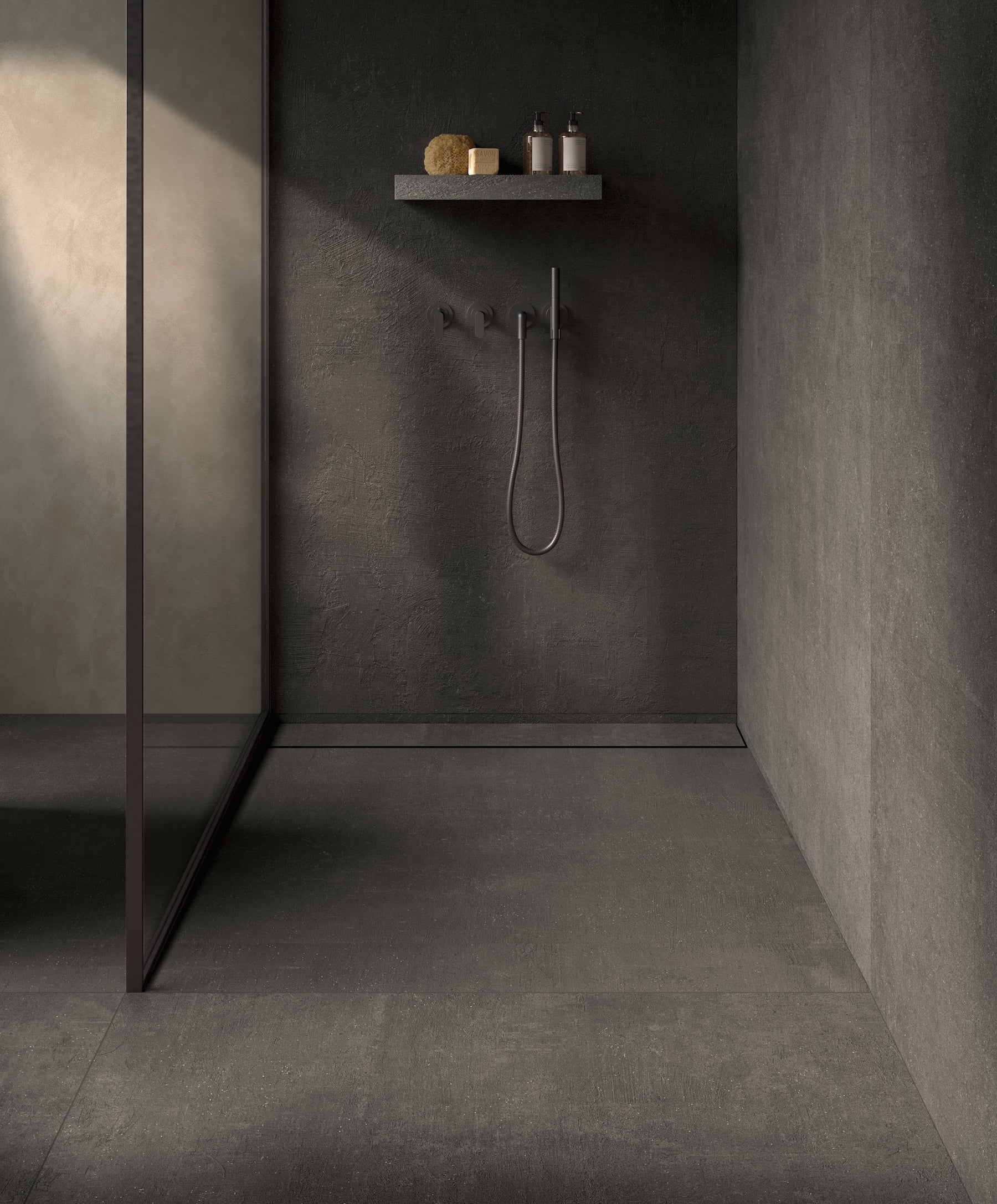 The Terra collection is crafted with the tones and textures of nature in mind—showcasing the simple beauty found in the elements of the earth. Terra Pomice tiles have a dark gray coloration and are available in a natural (matte) or rude (textured) finish with straight edges.