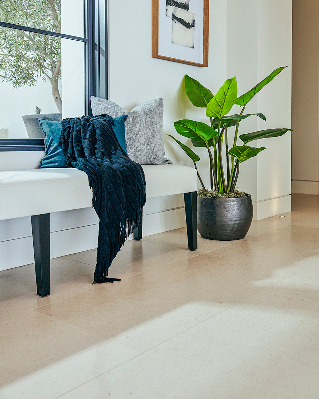 The beautiful and bright Blanco Duro is sourced in one of the largest natural stone repositories in central Portugal. Formed over millions of years in a marine environment, this durable limestone is characterized by its speckled light brown fossilization, subtle variations and consistent creamy beige coloration. Blocks are carefully selected for extraction before being transported to a local factory for a comprehensive quality inspection and fabrication. After slabs are sawn from each block, individual sections are cut to size by order. Expert stonemasons oversee every step of the process, from the quarry to final shipment, ensuring superior precision in its production, and a pristine appearance for all new installations.