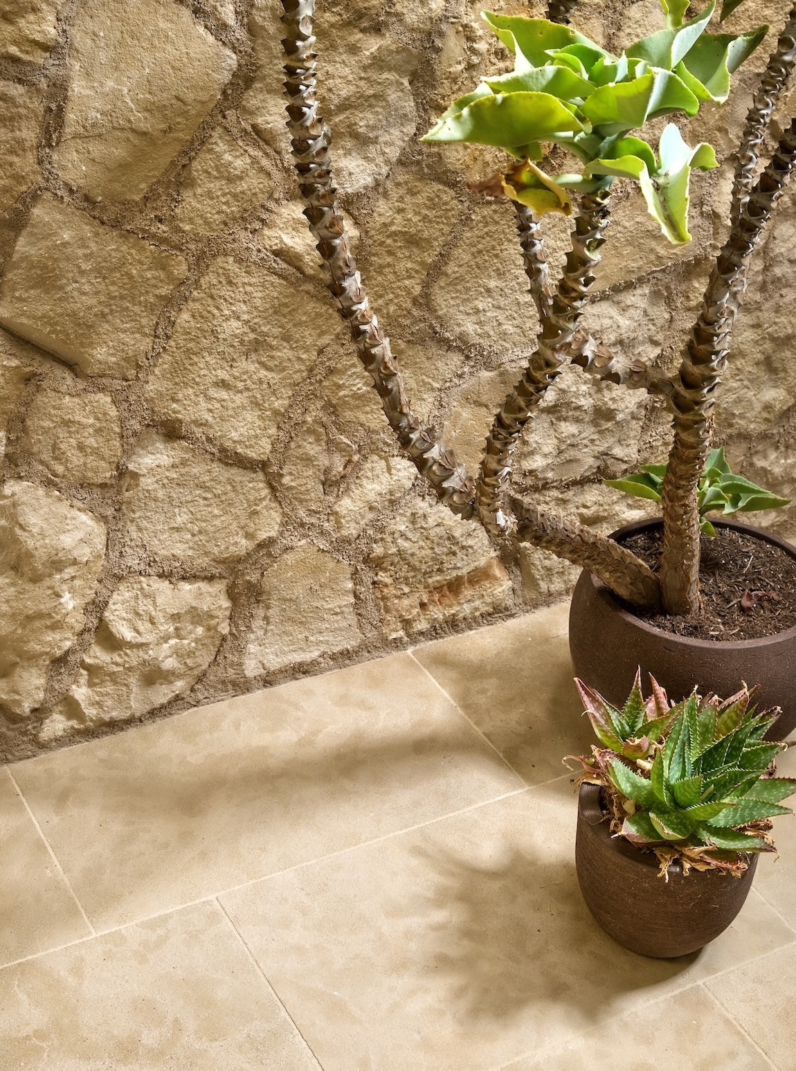 Newly quarried Marra limestone has a rich beige color with pronounced variation and a smoother, slightly textured surface. A versatile stone that is suitable for a wide range of styles.