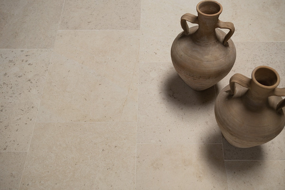 A fairly consistent French limestone with light-to-medium cream tones and cooler undertones. It has an interesting variation of shelling and natural veining with straight edges and a smooth, refined surface.