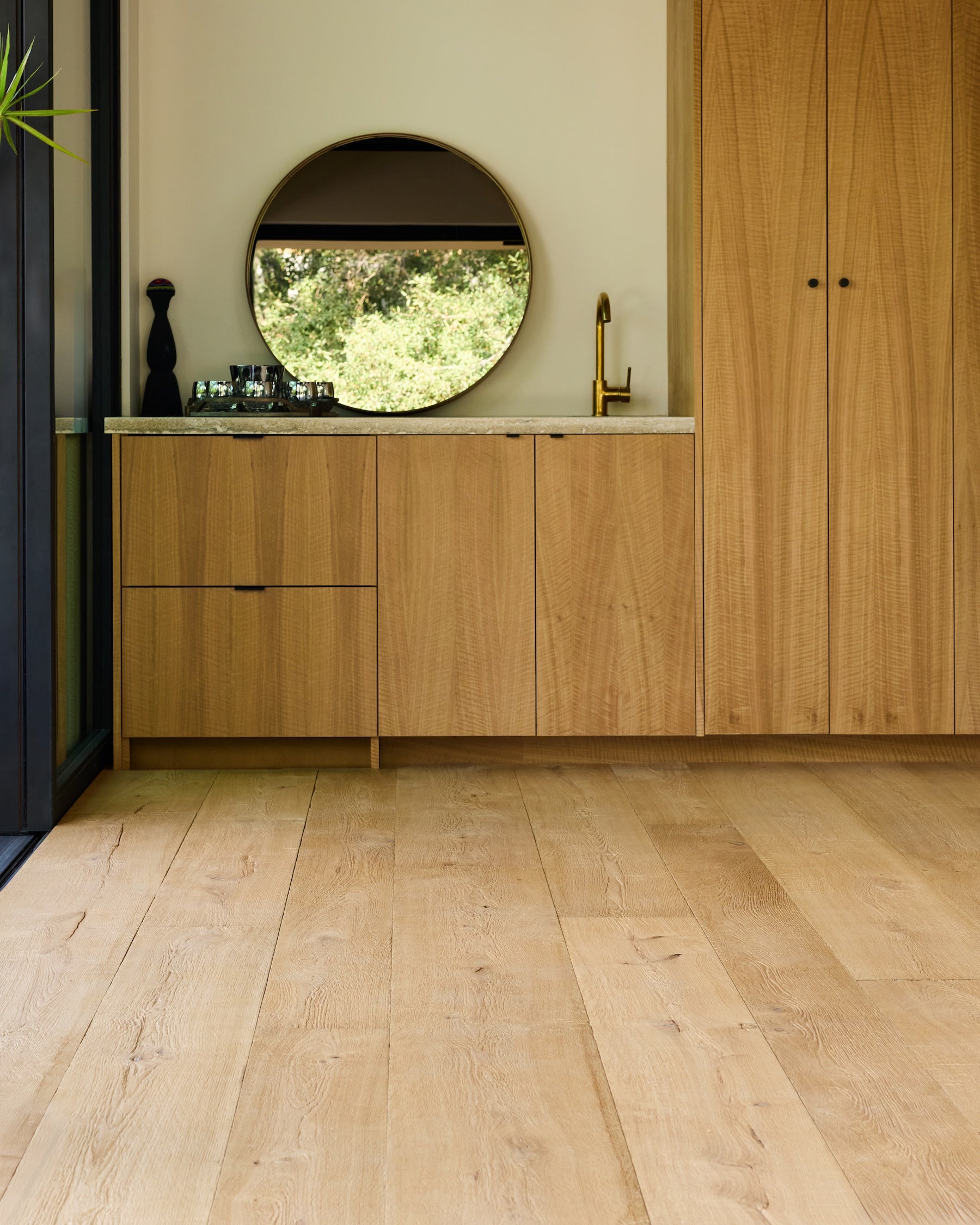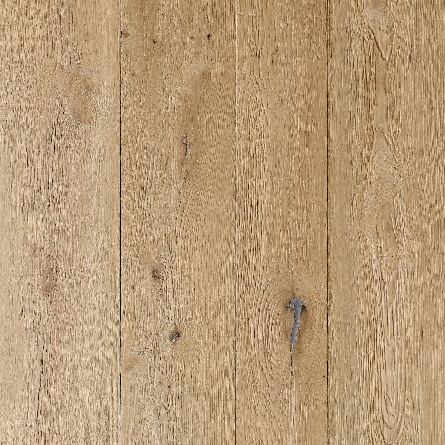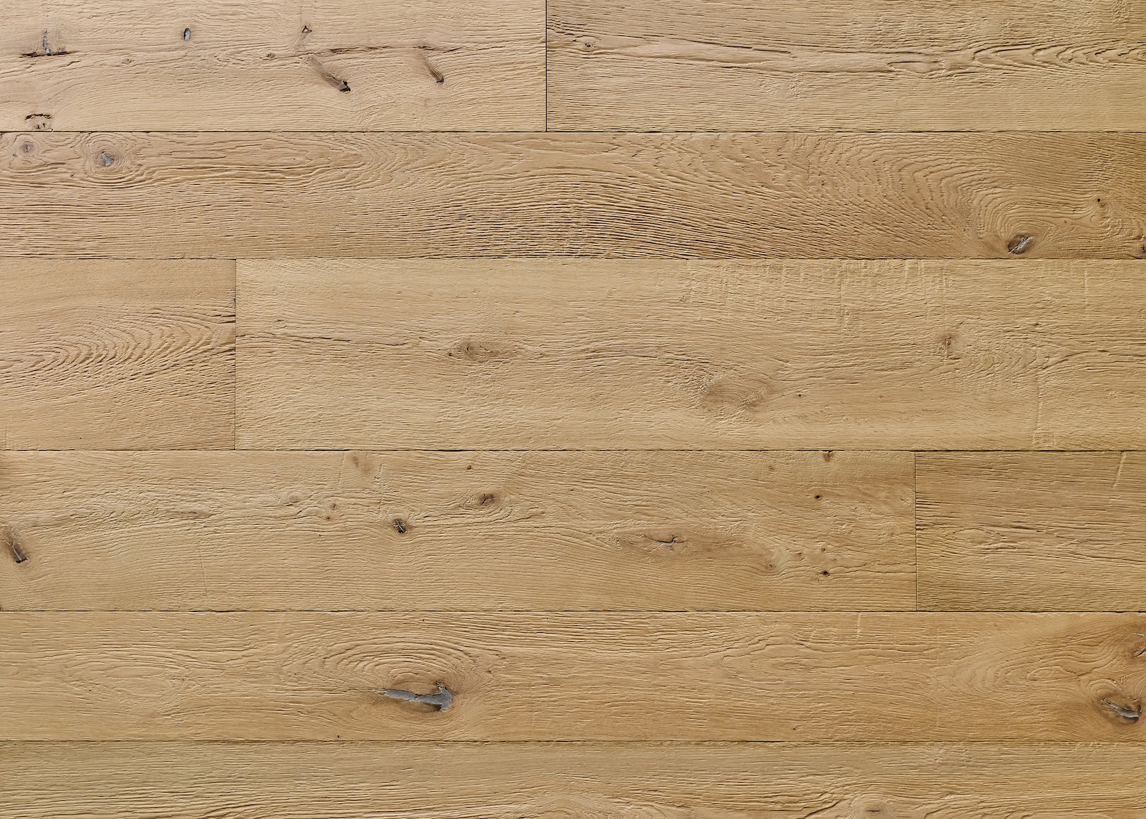 The raw oak in the Atelier collection comes from a single region in Europe, resulting in more consistent planks with lower variation than typical wood selections. These areas are carefully maintained by forest managers, and trees are selected in adherence with strict standards according to their maturity and quality. During finishing, the planks are individually hand-distressed by master artisans to evoke the authentic texture and charm of more timeworn surfaces, offering a distinctly rustic finished appearance that emphasizes the beauty of natural oak.