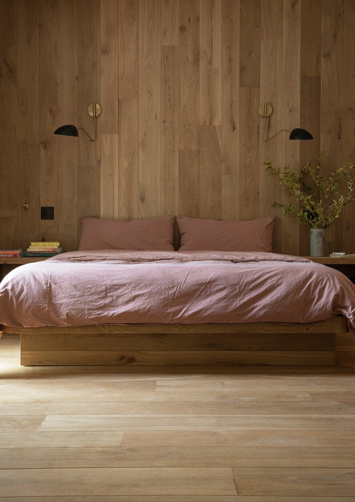 The raw oak used for Chambord Smoked comes from forests throughout Europe, primarily France and Belgium. These areas are carefully maintained by forest managers, and trees are selected in adherence with strict standards according to their maturity, quality and suitability for use in flooring applications. After sourcing, the logs are transported to Belgium where they are cut specifically from different sections of each log to yield usable planks for both solid and engineered formats. After fabrication, planks are then placed in a customized smoker that naturally enriches the coloration of the wood without the use of synthetic dyes or pigments.