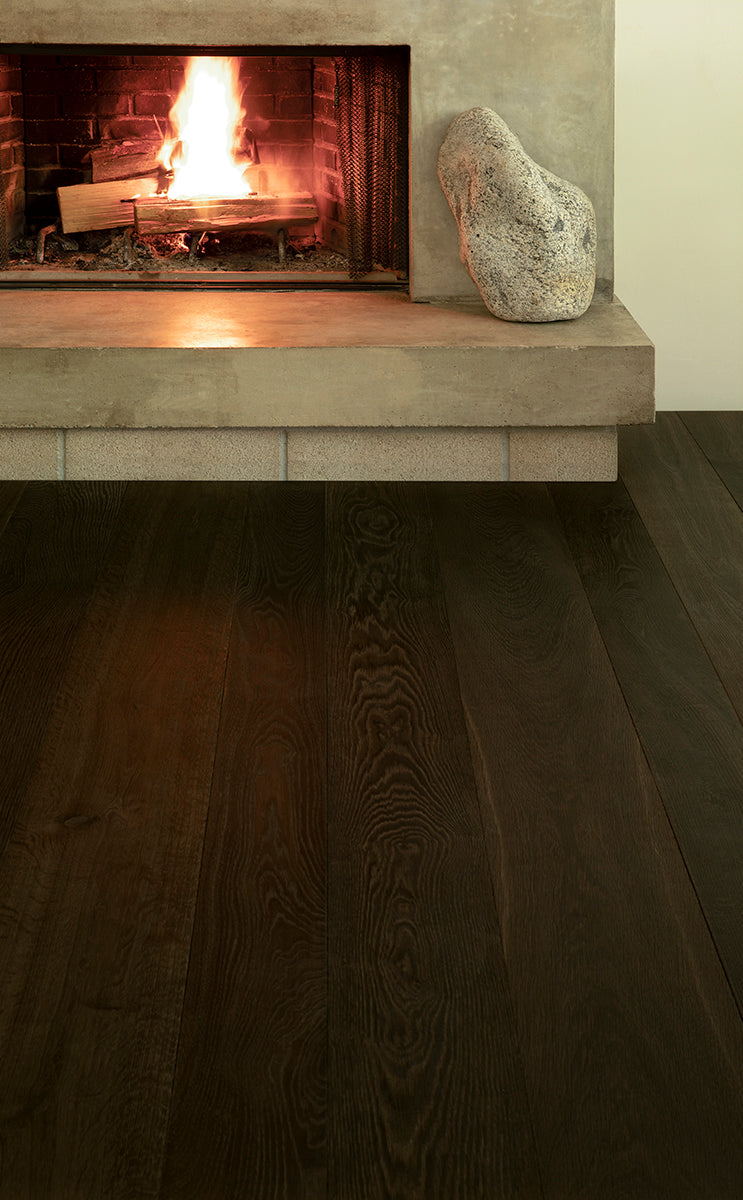 The raw oak in the Lumiere collection comes from forests throughout Europe, primarily France and Belgium. These areas are carefully maintained by forest managers, and trees are selected in adherence with strict standards according to their maturity, quality and suitability for use in flooring applications. After sourcing, the logs are transported to France for fabrication. The planks are then hand-brushed and finished in a variety of rich neutral tones. The distinctive colorations found in this collection are achieved through a reactive process that activates the wood tannins present in each individual plank. This results in a uniquely dramatic, yet natural, final appearance. With effortless elegance, Lumiere floors embody the beautiful balance found between traditional craftsmanship and contemporary aesthetics.