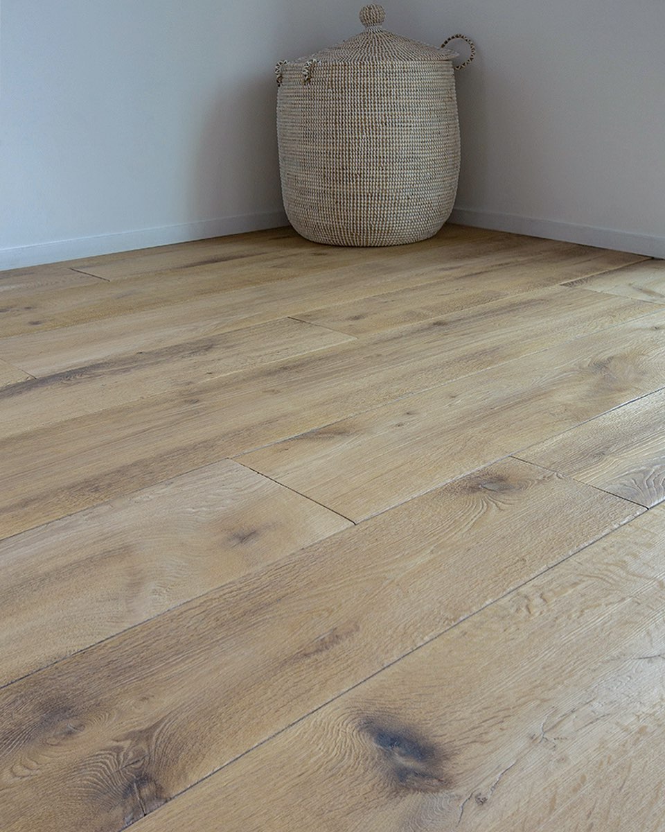 The raw oak in the Normandie collection comes from forests throughout southeastern France. The particular climate in this region yields remarkably large, straight logs with a characteristically tight wood grain. The areas are carefully maintained by forest managers, and trees are only harvested once they reach their full maturity, approximately 150 years. The areas are then repopulated with new plantings to ensure the future health of the forest. After fabrication, the planks are transported to Belgium to be hand-finished individually. The distinctive appearance of Normandie Flamed is inspired by traditional wood-burning techniques, like the Japanese shou sugi ban. The surface of the wood is intentionally burned and then brushed, leaving traces of charring.