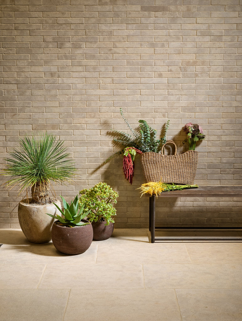The Briquette collection offers Moroccan limestone pavers in four unique colorways with two distinctive surface finish options.