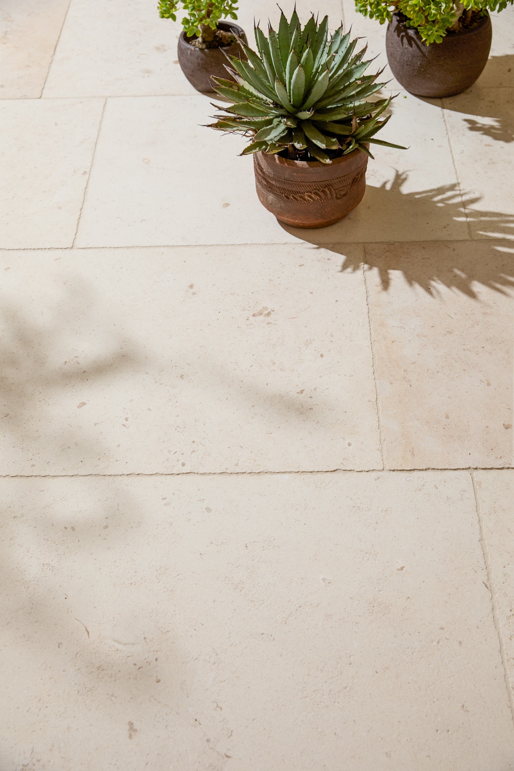 Newly quarried Charente limestone is sourced from the Charente department of southwestern France. A major geological basin for over 165 million years, the stone from this area has been used in the construction of cities, castles, mausoleums and cathedrals throughout the region for centuries. Sections of the quarry are completely dedicated to this specific type of limestone, where blocks are cut horizontally and vertically before being transported to the factory for fabrication. The blocks are cut into both thick and thin slabs which are then finished in a variety of surface textures. Certain slabs are cut to size by expert stonemasons who carefully inspect every piece for its structural integrity, unique characteristics, suitability of use and quality.