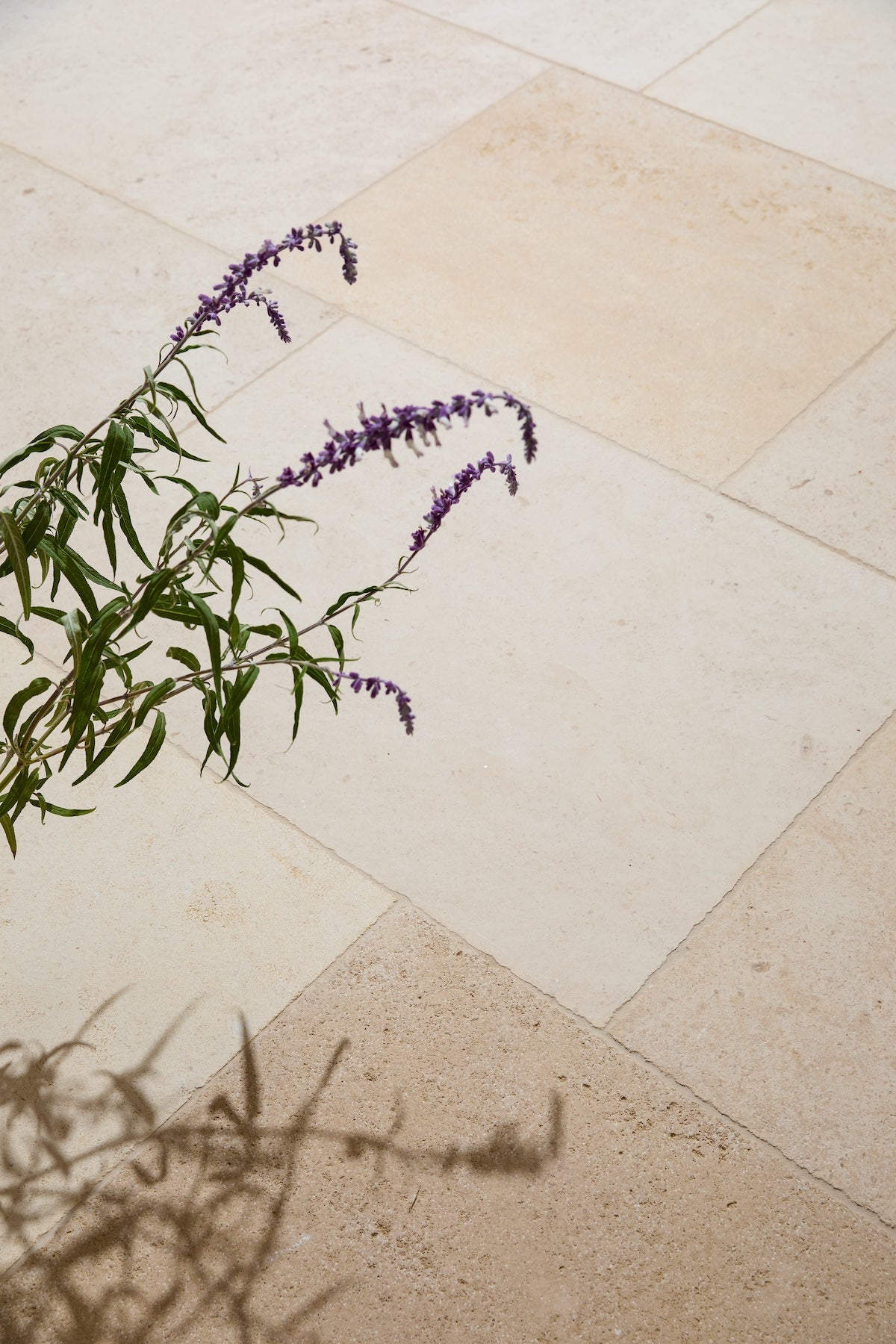 Newly quarried Charente limestone is sourced from the Charente department of southwestern France. A major geological basin for over 165 million years, the stone from this area has been used in the construction of cities, castles, mausoleums and cathedrals throughout the region for centuries. Sections of the quarry are completely dedicated to this specific type of limestone, where blocks are cut horizontally and vertically before being transported to the factory for fabrication. The blocks are cut into both thick and thin slabs which are then finished in a variety of surface textures. Certain slabs are cut to size by expert stonemasons who carefully inspect every piece for its structural integrity, unique characteristics, suitability of use and quality.